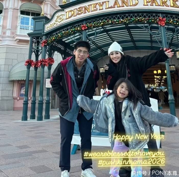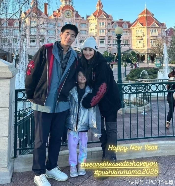 三人一起出现在迪士尼乐园,洋溢着幸福和甜蜜!换了黑色外套的何超盈,头戴白色针织帽,五官看起来更深邃!